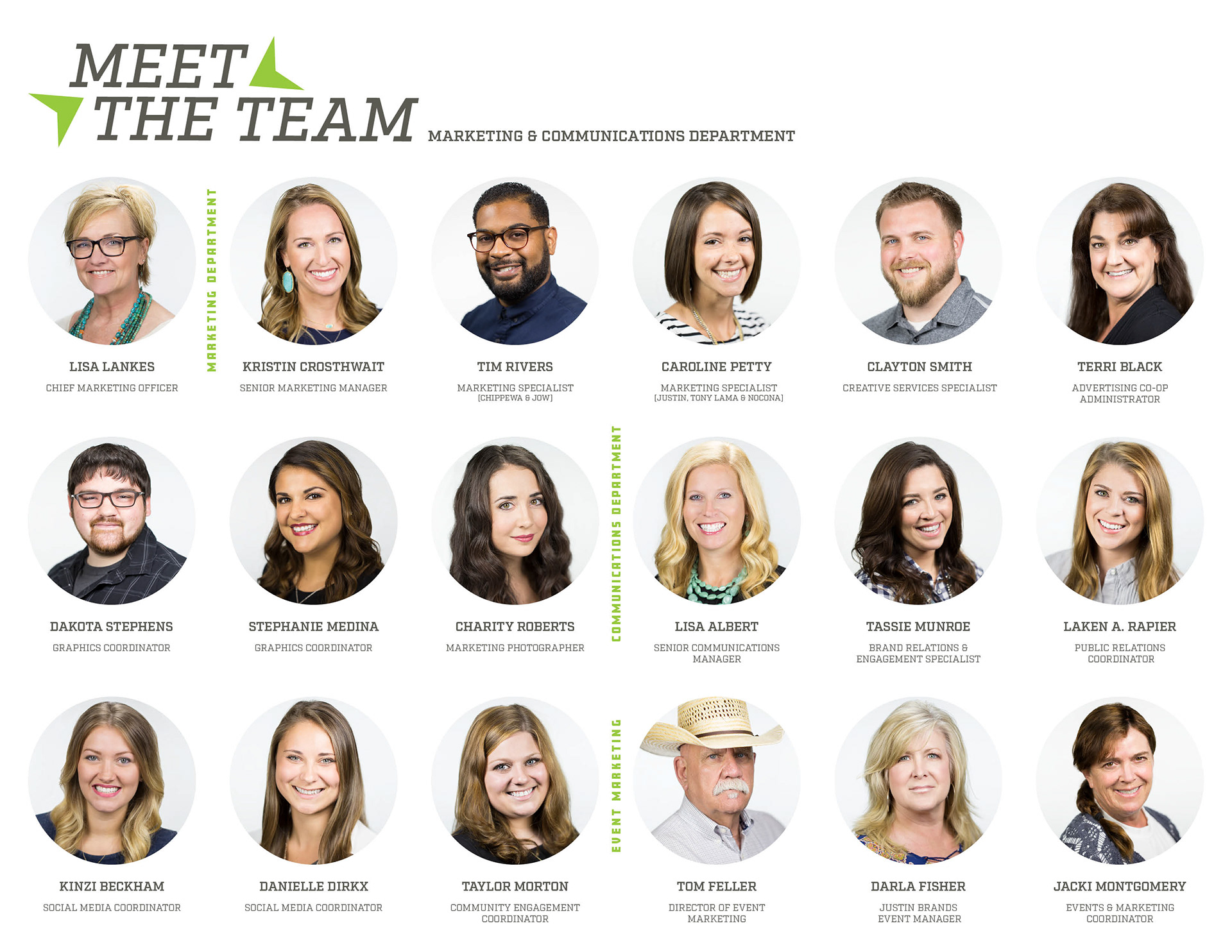 Logo for Justin Brands, Inc. Annual Sales meeting and a Meet the Team Graphic of the Marketing Department at Justin Brands, Inc.